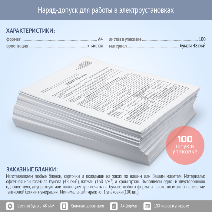Наряд-допуск для работы в электроустановках (упаковка из 100 штук) в Рошале купить