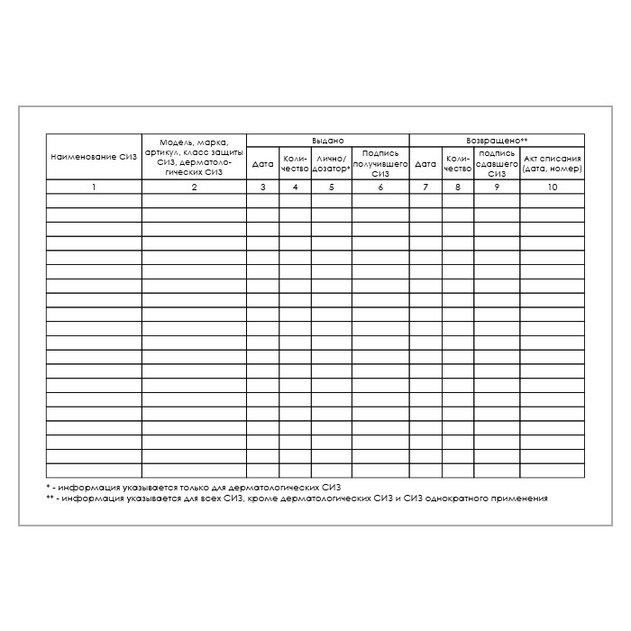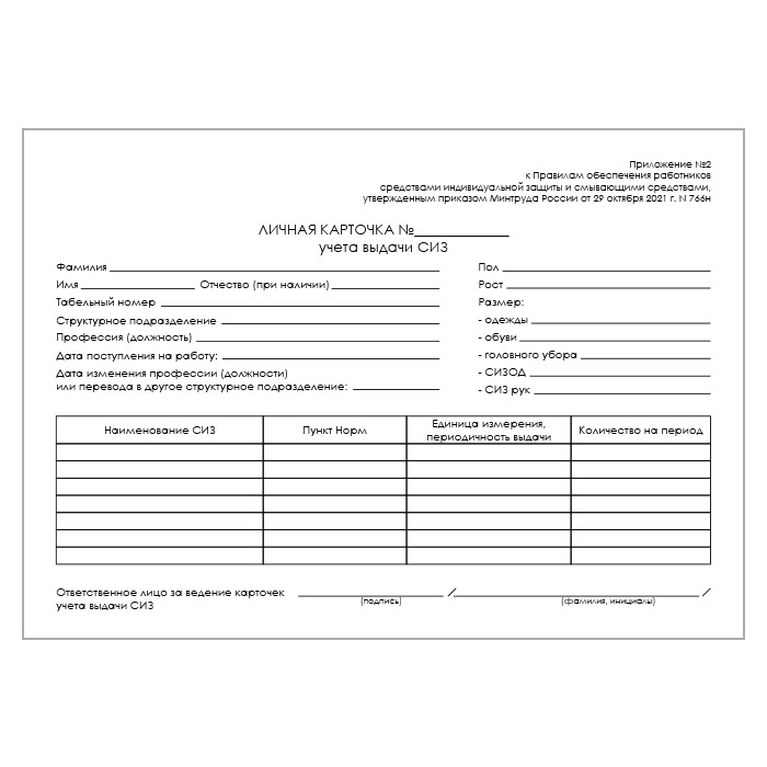 Карточка выдачи СИЗ (приказ Минтруда России от 29 октября 2021 г. №766н, упаковка 100 штук) в Рошале купить