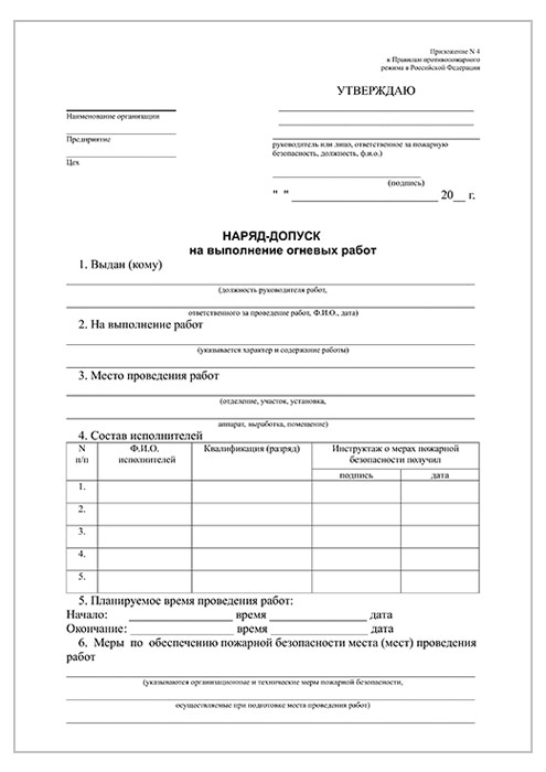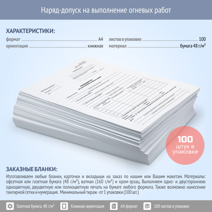 Наряд-допуск на выполнение огневых работ (упаковка из 100 штук) в Рошале купить