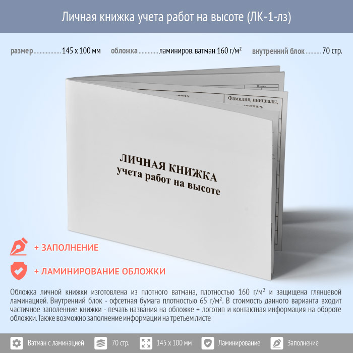 Личная книжка учета работ на высоте (с ламинированием обложки и заполнением, ЛК-1-лз) в Рошале купить