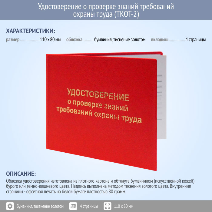 Бланк удостоверения о проверке знаний требований охраны труда (ТКОТ-2) в Рошале купить