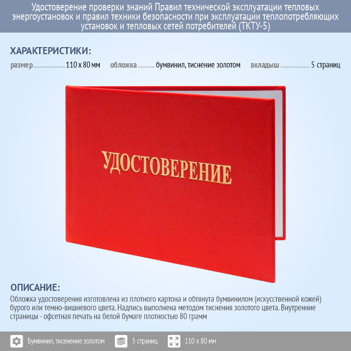 Бланк удостоверения проверки знаний Правил технической эксплуатации тепловых энергоустановок и правил техники безопасности при эксплуатации теплопотребляющих установок и тепловых сетей потребителей (ТКТУ-5) в Рошале купить
