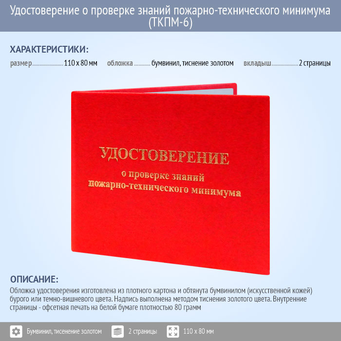 Бланк удостоверения о проверке знаний пожарно-технического минимума (ТКПМ-6) в Рошале купить