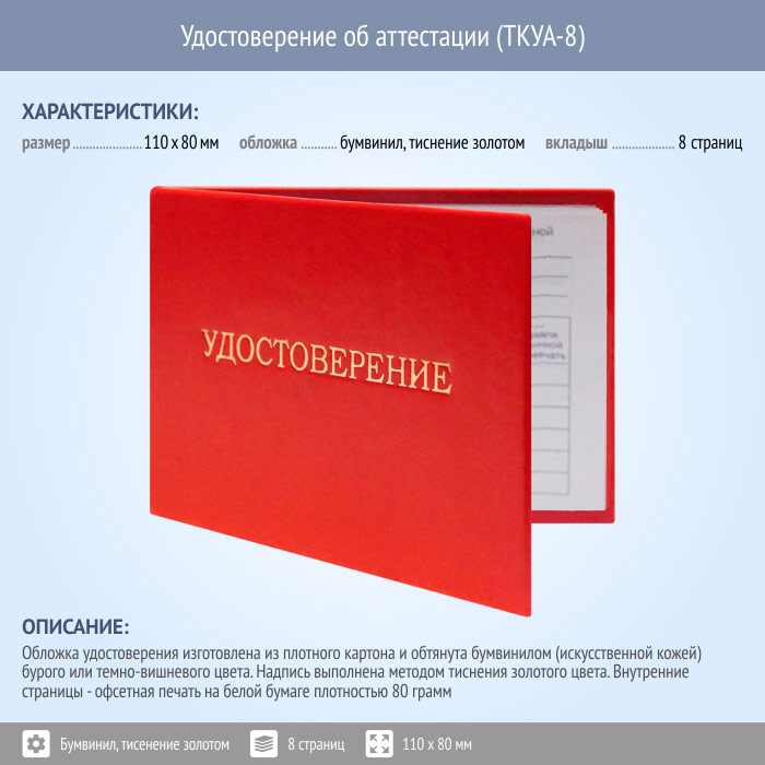 Бланк удостоверения об аттестации (ТКУА-8) в Рошале купить