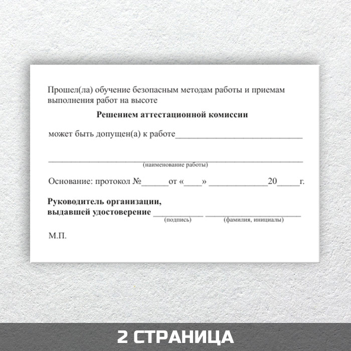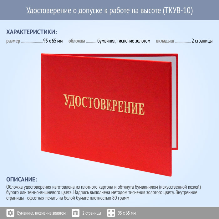 Бланк удостоверения о допуске к работе на высоте (ТКУВ-10) в Рошале купить