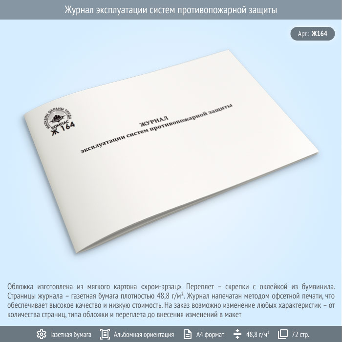 Журнал эксплуатации систем противопожарной защиты является официальным учетным документом, предназначенным для регулярной фиксации технического состояния, проверок, технического обслуживания и ремонта систем противопожарной защиты (ППЗ), включая пожарную сигнализацию, системы оповещения и управления эвакуацией, автоматические установки пожаротушения (водяного, порошкового, газового и других типов), дымоудаления, внутренний противопожарный водопровод и другое оборудование. Журнал обязателен к ведению на объектах различного назначения — от производственных помещений до офисных и торговых центров, в соответствии с требованиями нормативной документации (в том числе Правилами противопожарного режима в РФ).