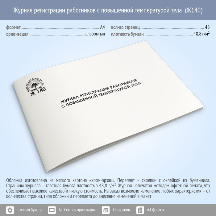 Журнал регистрации работников с повышенной температурой тела (48 стр., Ж140) в Рошале купить