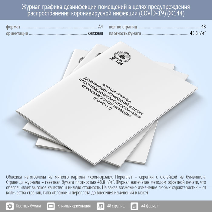 Журнал графика дезинфекции помещений в целях предупреждения распространения коронавирусной инфекции (COVID-19) (48 стр., Ж144) в Рошале купить