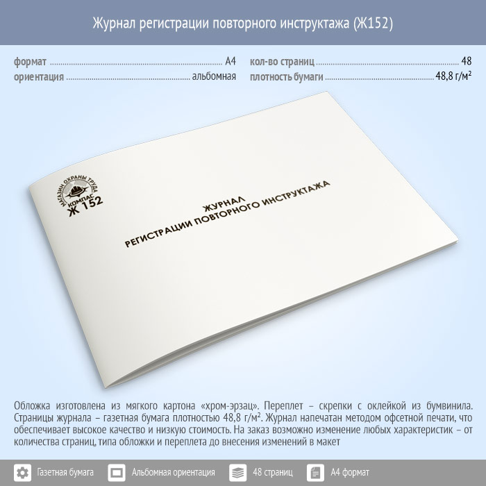 Журнал регистрации повторного инструктажа (48 стр., Ж152) в Рошале купить