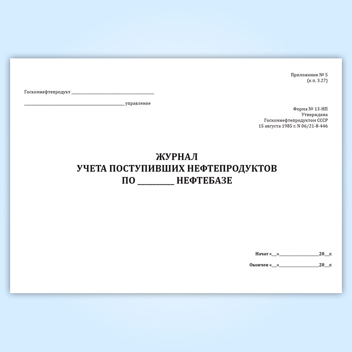 Журнал учета поступивших нефтепродуктов по нефтебазе (форма № 13-НП) в Рошале купить