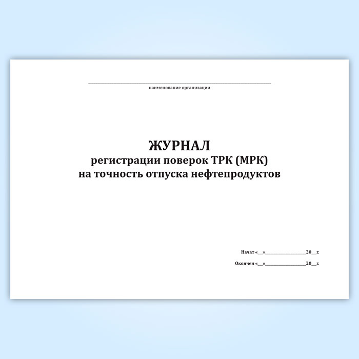 Журнал регистрации поверок ТРК (МРК) на точность отпуска нефтепродуктов в Рошале купить