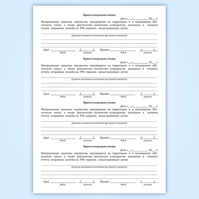 Журнал приема и передачи смен на АЗС в Рошале купить