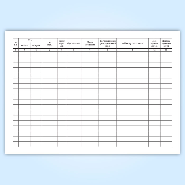 Журнал учета приема и выдачи многоразовых литровых топливных карт в Рошале купить