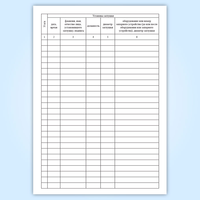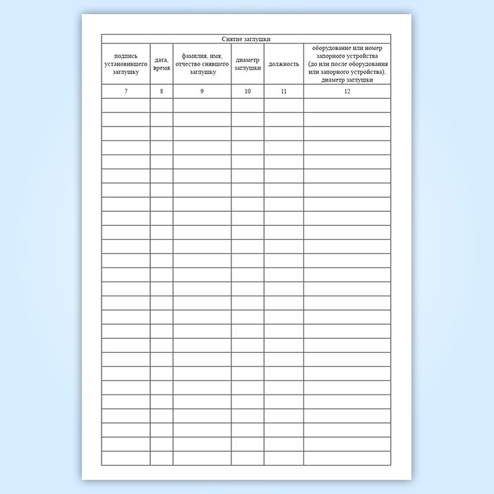 Журнал установки и снятия заглушек в Рошале купить