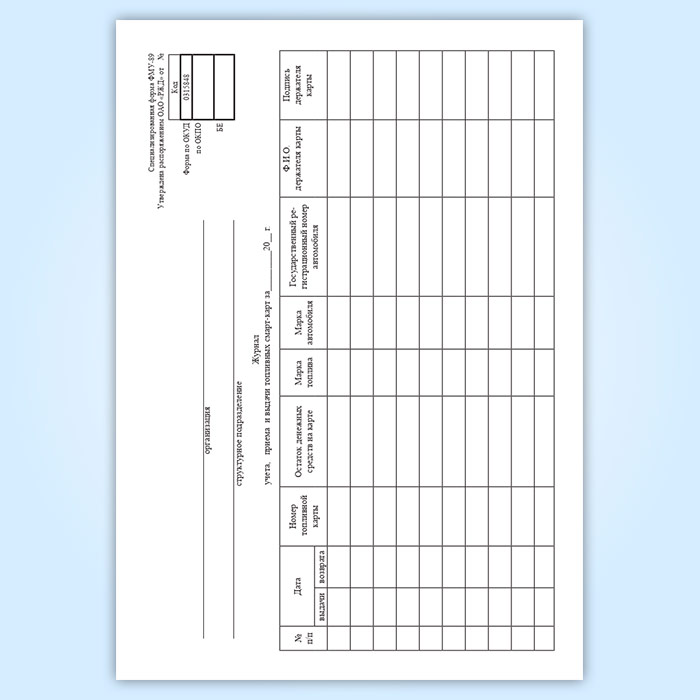 Журнал учета, приема и выдачи топливных смарт-карт в Рошале купить