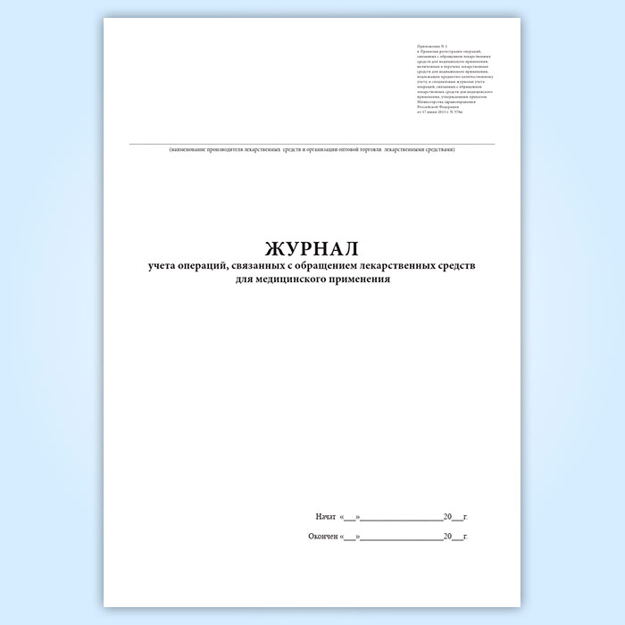 Журнал учета операций, связанных с обращением лекарственных средств для медицинского применения (для производителя лекарственных средств и организации оптовой торговли лекарственными средствами) в Рошале купить