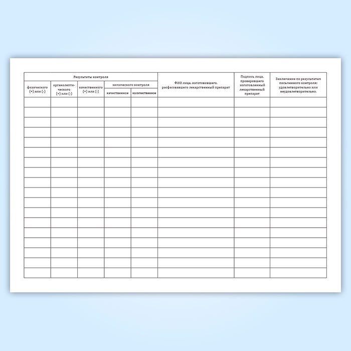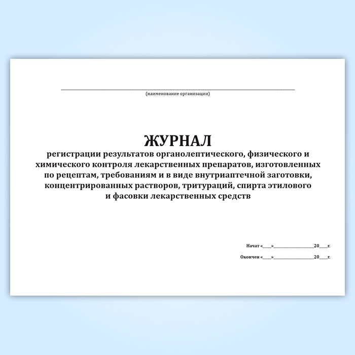 Журнал регистрации результатов органолептического, физического и химического контроля лекарственных препаратов, изготовленных по рецептам, требованиям и в виде внутриаптечной заготовки, концентрированных растворов, тритураций, спирта этилового и фасовки лекарственных средств в Рошале купить