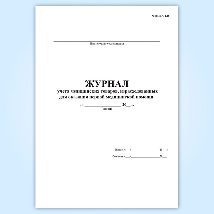 Журнал учета медицинских товаров, израсходованных для оказания первой медицинской помощи (форма А-2.15) в Рошале купить