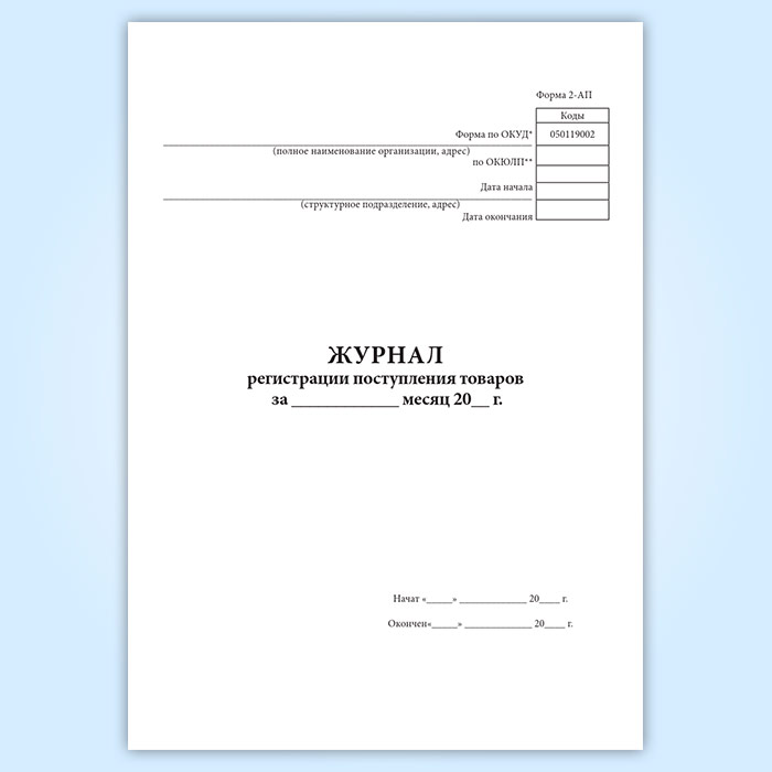 Журнал регистрации поступления товаров (форма 2-АП) в Рошале купить