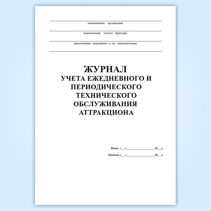 Журнал учета ежедневного и периодического технического обслуживания аттракциона в Рошале купить