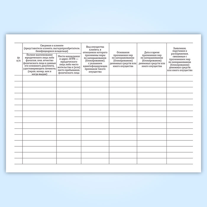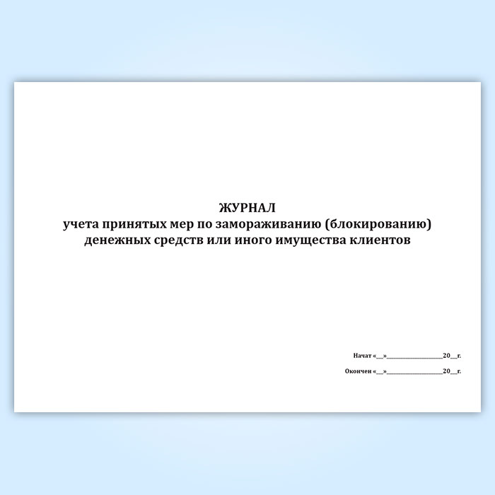 Журнал учета принятых мер по замораживанию (блокированию) денежных средств или иного имущества клиентов в Рошале купить
