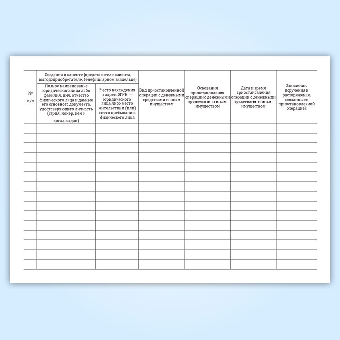 Журнал учета приостановленных операций с денежными средствами и иным имуществом клиента в Рошале купить