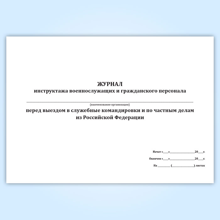 Журнал инструктажа военнослужащих и гражданского персонала перед выездом в служебные командировки и по частным делам из Российской Федерации в Рошале купить