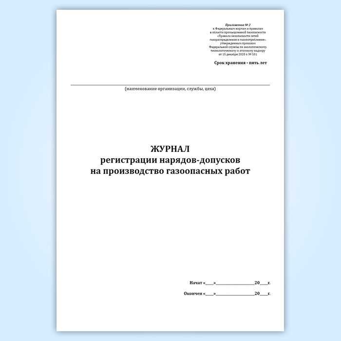Журнал регистрации нарядов-допусков на производство газоопасных работ в Рошале купить
