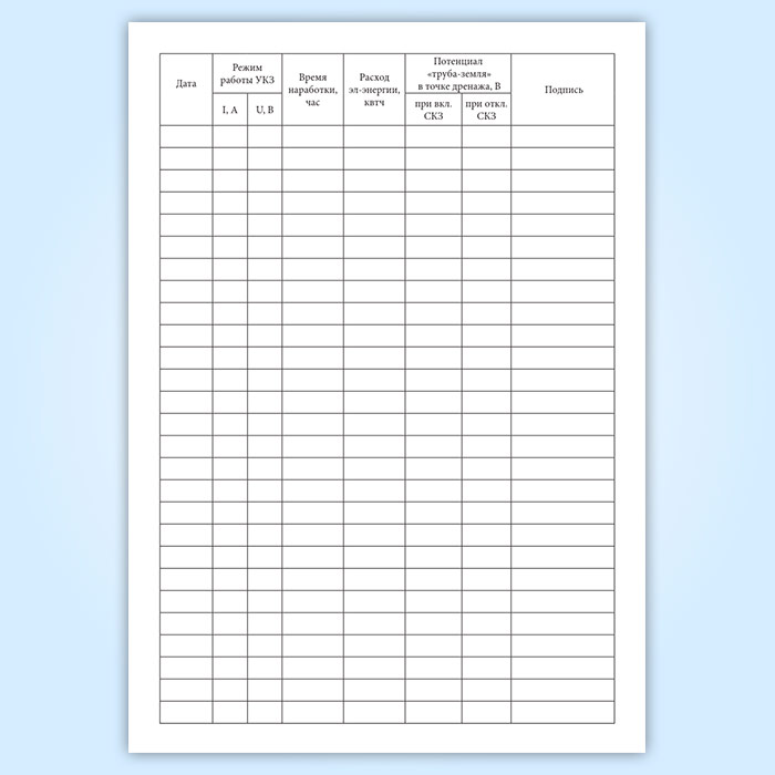 Полевой журнал учета работы установки катодной защиты в Рошале купить