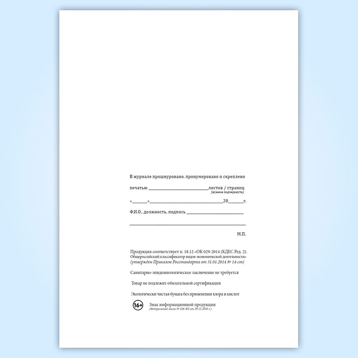 Вы получаете печатную продукцию прошнурованной и c местом для вашей печати в соответствии с действующими нормативными документами: