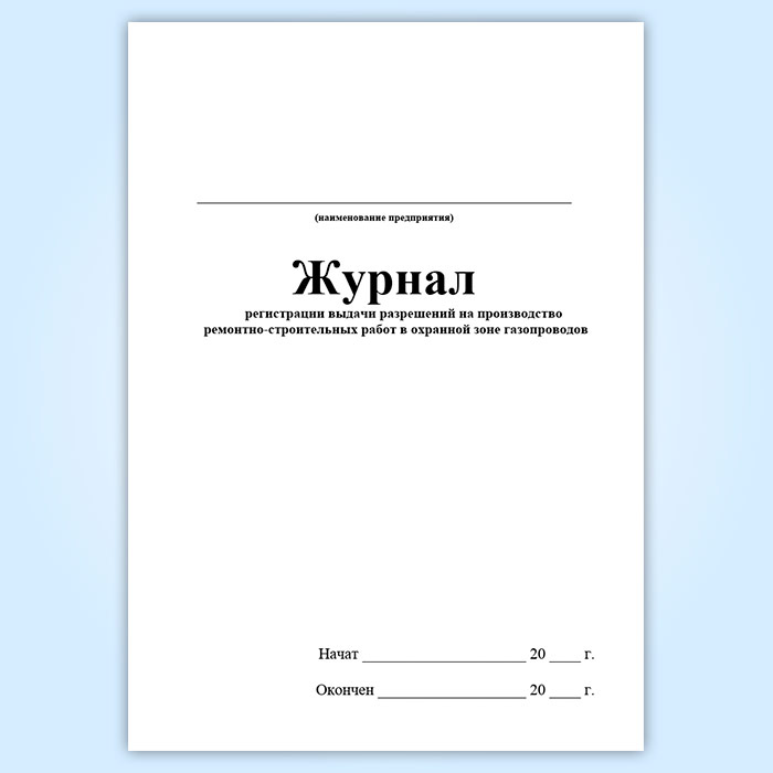 Журнал регистрации выдачи разрешений на производство ремонтно-строительных работ в охранной зоне газопроводов (ГЭГ-14) в Рошале купить