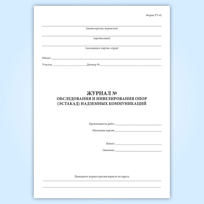 Журнал обследования и нивелирования опор (эстакад) надземных коммуникаций (форма УТ-41) в Рошале купить
