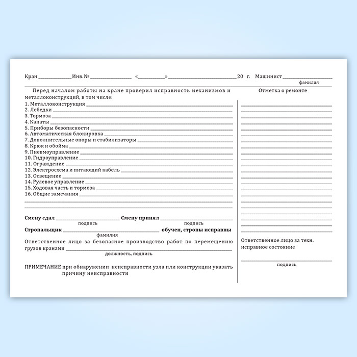 Вахтенный журнал г/п крана в Рошале купить