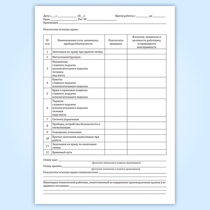 Вахтенный журнал машиниста мостового крана в Рошале купить