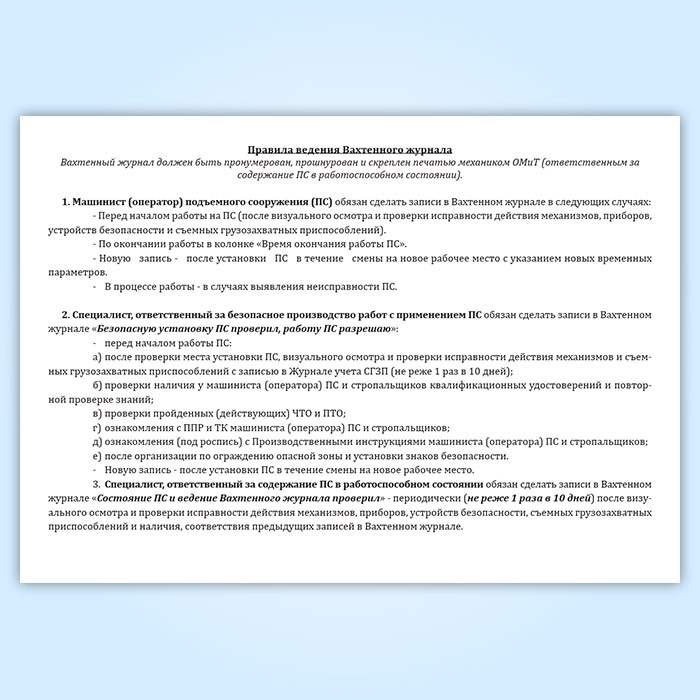 Вахтенный журнал машиниста (оператора) подъемного сооружения (крана) в Рошале купить
