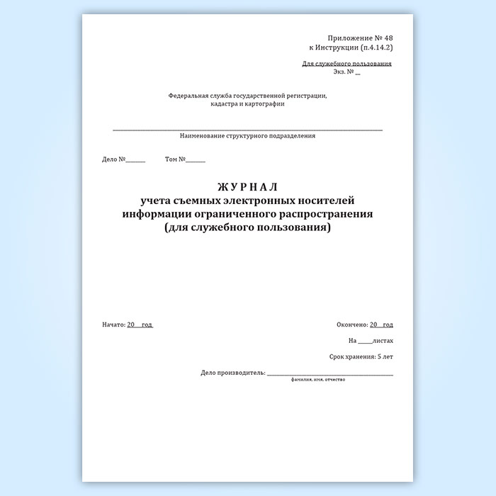 Журнал учета съемных электронных носителей информации ограниченного распространения (для служебного пользования) в Рошале купить