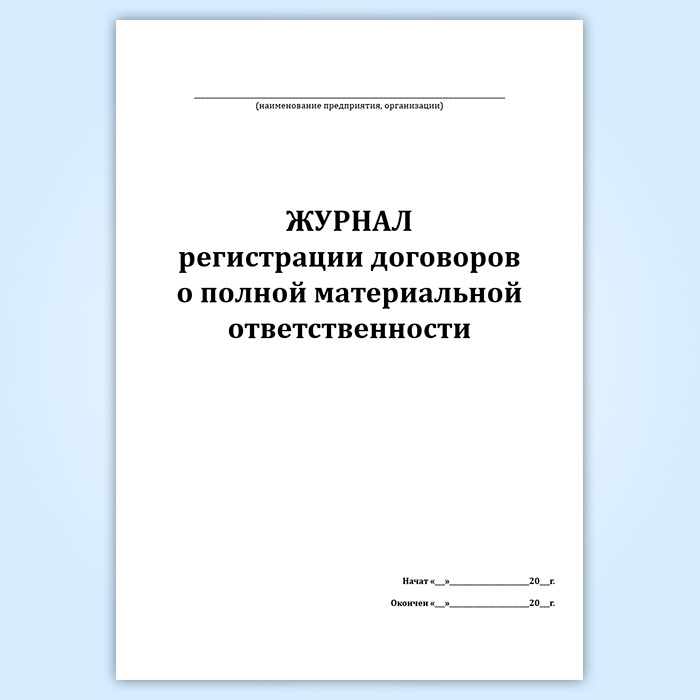 Журнал регистрации договоров о полной материальной ответственности в Рошале купить