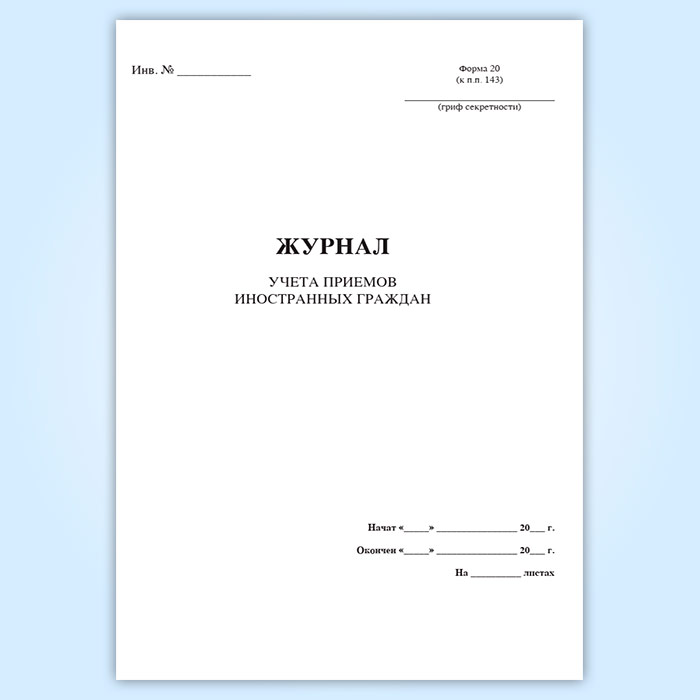 Журнал учета приемов иностранных граждан (форма 20) в Рошале купить
