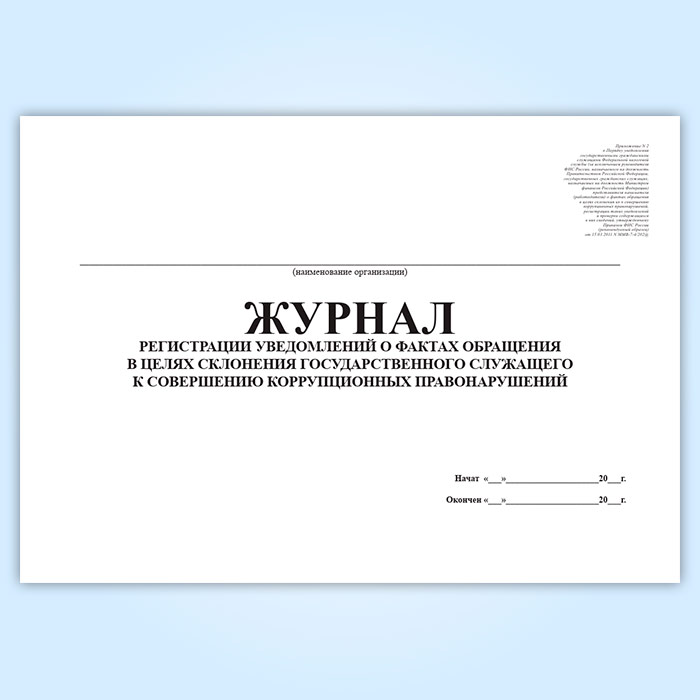 Журнал регистрации уведомлений о фактах обращения в целях склонения государственного служащего к совершению коррупционных правонарушений в Рошале купить