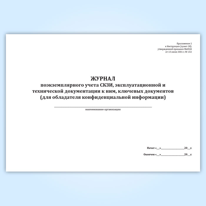 Журнал поэкземплярного учета СКЗИ, эксплуатационной и технической документации к ним, ключевых документов (для обладателя конфиденциальной информации) в Рошале купить