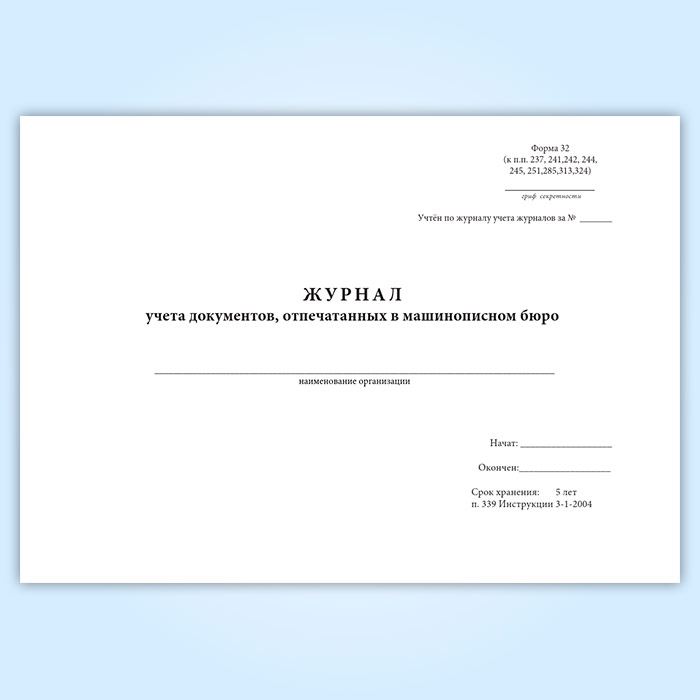 Журнал учета документов, отпечатанных в машинописном бюро (форма 32) в Рошале купить