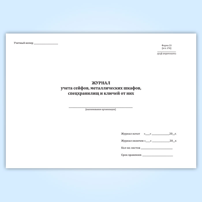 Журнал учета сейфов, металлических шкафов, спецхранилищ и ключей от них в Рошале купить