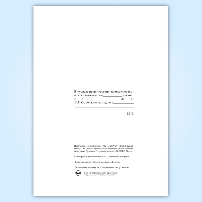 Вы получаете печатную продукцию прошнурованной и c местом для вашей печати в соответствии с действующими нормативными документами: