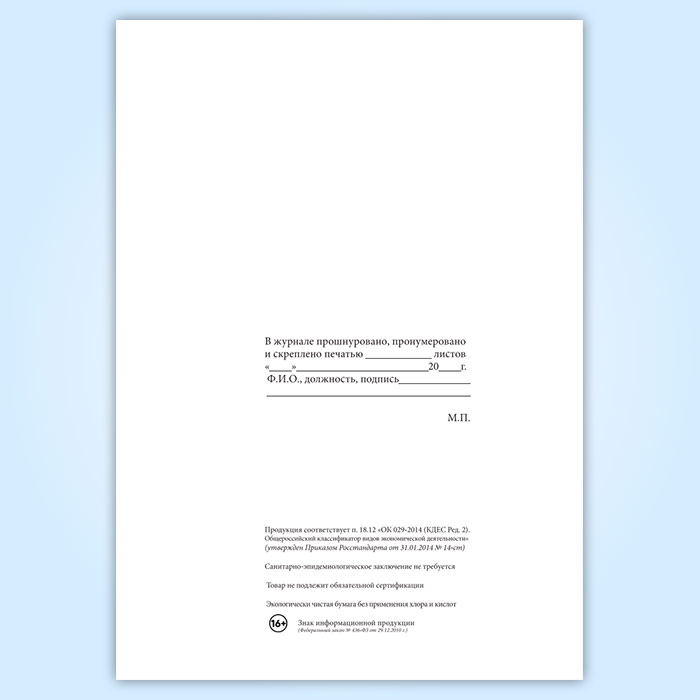 Вы получаете печатную продукцию прошнурованной и c местом для вашей печати в соответствии с действующими нормативными документами: