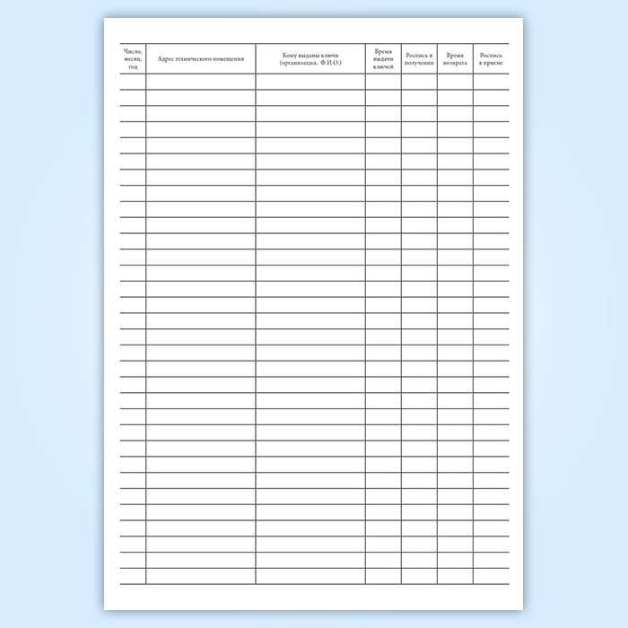 Журнал учета выдачи ключей от технических помещений, контролируемых ОДС в Рошале купить