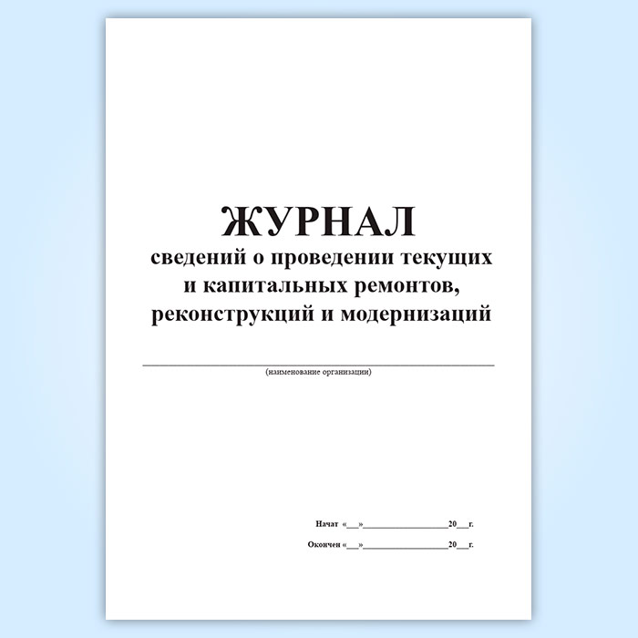 Журнал сведений о проведении текущих и капитальных ремонтов, реконструкций и модернизаций в Рошале купить