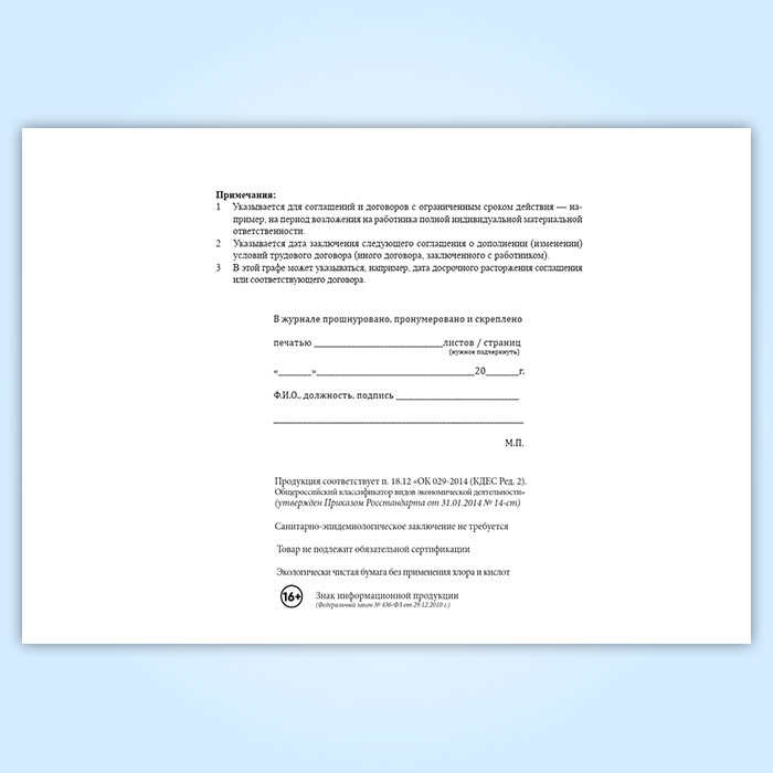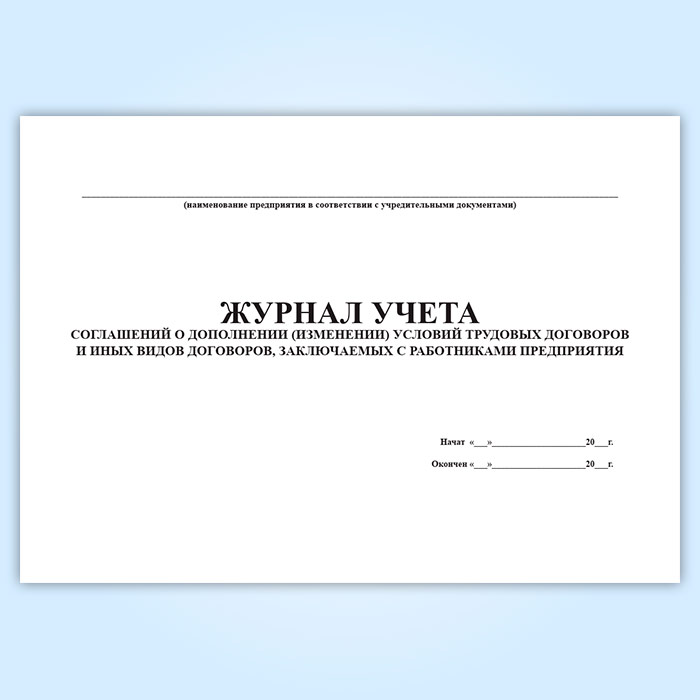 Журнал учета соглашений о дополнении (изменении) условий трудовых договоров и иных видов договоров, заключаемых с работниками предприятия в Рошале купить