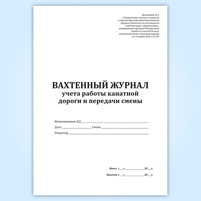 Вахтенный журнал учета работы канатной дороги и передачи смены в Рошале купить