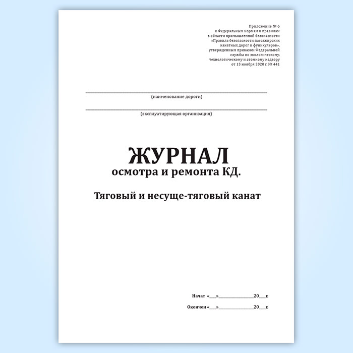 Журнал осмотра и ремонта канатной дороги. Тяговый и несуще-тяговый канат (форма № 2) в Рошале купить