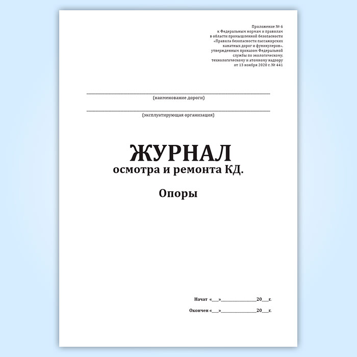 Журнал осмотра и ремонта канатной дороги. Опоры (форма № 6) в Рошале купить
